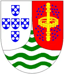 Neben den gemeinsamen Elementen der fünf Quinas, dem zentralen Bestandteil des Wappens Portugals, und den fünf grünen Wellen auf Silber, hatte São Tomé und Príncipe ein rotes Feld mit einem goldenen Rad und Achse einer Wassermühle und 17 Wassertropfen.