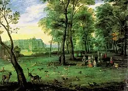 Diese mittelalterlichen jagdlichen Lustgärten nannte man in den südlichen und nördlichen Niederlanden „Warande“[1]. Es finden sich noch heute in vielen Städten Flanderns und der Niederlande Plätze oder Viertel, die diesen Namen tragen. Der Herzog von Brabant hielt in diesem Wildgehege Hirsche, Wildschweine und Ähnliches. Direkt am Schloss befand sich jedoch auch noch ein kleinerer Ziergarten.