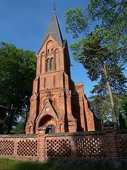 - Neugotische Dorfkirche Polchow von 1891 nach Plänen von Gotthilf Ludwig Möckel vom Teterower Baumeister Pitschner gebaut
