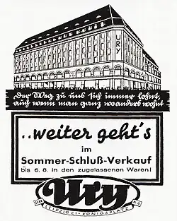 - Kaufhaus Ury (Leipzig). In: veikkos-archiv.com. Abgerufen am 10. November 2020 (Reklamemarken).