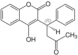 Warfarin ist ein chiraler Wirkstoff aus der Gruppe der 4-Hydroxycumarine, die wiederum als Vitamin-K-Antagonisten zu den Antikoagulanzien gehören und somit eine blutgerinnungshemmende Wirkung haben. Es wird das Racemat verwendet.