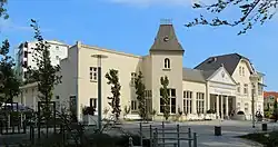 Es entstand 1906 auf Initiative des Gemeindevorstehers Hermann Holtz als Gemeindehaus mit Warmbad. Im Erdgeschoss entstanden Büros, im ersten Stockwerk befand sich die Wohnung des Gemeindevorstehers. Dahinter waren zunächst 14 Warmbadezellen untergebracht. Wenig später wurde an das Vorderhaus ein Lese- und Musikzimmer sowie weitere 16 Warmbadezellen angebaut.