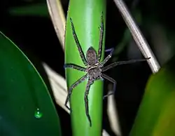 - ↑ Jude A. Ewunken, Nelson N. Ntonifor, Mbua Christophe Parr: BIOECOLOGY OF Heteropoda venatoria (Linnaeus) (Araneae: Sparassidae) AND ITS IMPLICATIONS IN A TROPICAL BANANA AGROECOSYSTEM. In: Journal of Global Agriculture and Ecology. Band 5, Nr. 2, 2016, ISSN 2454-4205, S. 164 (researchgate.net [abgerufen am 24. September 2020]).