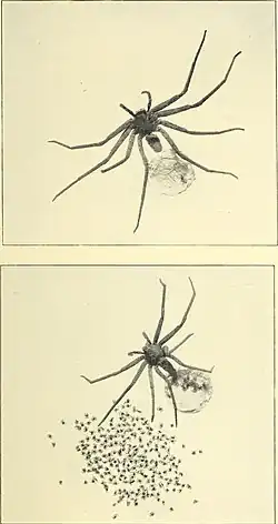 - ↑ a b c d e f John Ross, David B. Richman: The life cycle of Heteropoda venatoria (Linnaeus) (Araneae: Heteropodidae). In: Psyche A Journal of Entomology. Band 89, Nr. 3–4, Januar 1982, S. 299, doi:10.1155/1982/26072 (researchgate.net [abgerufen am 6. Januar 2021]).