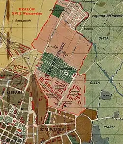 1910 wurde das Gebiet nach Krakau eingemeindet. Im Jahr 1921 hatte der Stadtteil XVIII. Warszawskie 2658 Einwohner, davon war die Mehrheit polnischer Nationalität (2613) und römisch-katholisch (2532).[1]