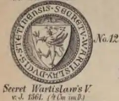 Wartislaw V. starb im Jahre 1390. Er wurde vermutlich im Kloster Pudagla bestattet.