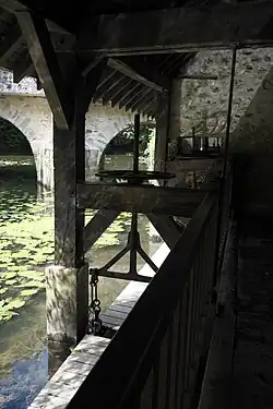 Die Vorrichtung, um den Holzboden dem Wasserniveau anzugleichen, ist noch vorhanden.