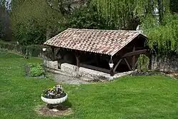 Das an drei Seiten offene Waschhaus wird von einer Quelle mit Wasser versorgt. Das Satteldach ist mit halbrunden Dachziegeln gedeckt.
