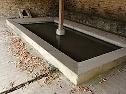 Das öffentliche Waschhaus aus Sandsteinmauerwerk mit Pultdach , das von einem Bach mit Wasser versorgt wird, besitzt nur ein Becken. Die Wäscherinnen waren bei der Arbeit nicht vor dem Wind geschützt.