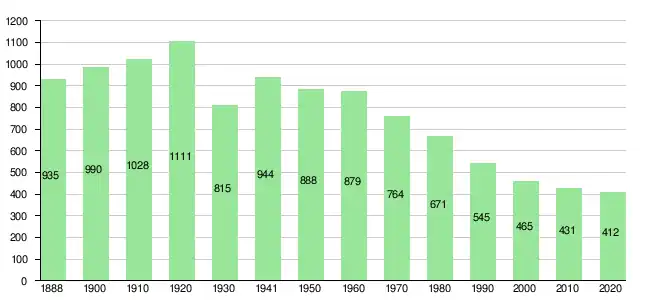 Quellen: Bevölkerungsentwicklung der Gemeinden 1850–2000[9]; 2010 ESPOP, 2020 STATPOP; heutiges Gemeindegebiet