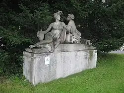 - ↑ Die Kopie K2 wurde 1944 durch Bomben zerstört, nur der Torso der Wiesennymphe und der Kopf der Wassernymphe blieben erhalten.