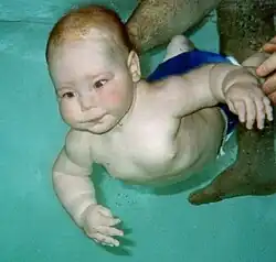 - ↑ Desmond Morris: Der Mensch, mit dem wir leben. Kapitel: „Verhalten im Wasser“
