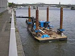 - Schwimmende Plattform, die entweder als Arbeitsponton zur Aufnahme von Maschinen und Gerätschaften oder als Transportponton für den Material- und Lastentransport verwendet wird. Pontons lassen sich flexibel kombinieren und an die jeweilige Bauaufgabe anpassen – etwa durch Kopplung mehrerer Einheiten zu größeren Arbeitsflächen.