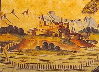 Die Wasserburg wurde um 1330 bis 1340 von den Grafen von Montfort erbaut. Sie brannte Ende des 15. Jahrhunderts ab und wurde im Bauernkrieg stark befestigt. Im Dreißigjährigen Krieg wurde die Burg 1647 erobert und brannte im Zuge des Abzugs der schwedischen Truppen aus. Graf Hugo XVIII. von Montfort stellte die Burg wieder her und ließ sie zu einem barocken Schloss mit Orangerie ausbauen. Sie diente ihm bis zu seinem Tod 1662 als Alterswohnsitz.