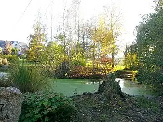 In Ortsmitte von Ebersbrunn in feuchter Aue der Pleiße und mehrerer Nebenbäche.