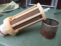 Eine mit Rostpartikeln zugesetzte Metallsieb-Wasserfilter-Patrone (inklusive Feinfilter)