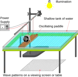 Bei einem Wellenkanal werden Oberflächenwellen simuliert. Wellentanks oder Wellenbecken dienen zum Studium der zweidimensionalen Ausbreitung von Wellen.