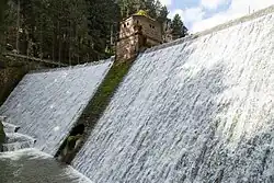 Die Heimbach-Talsperre liegt unterhalb des Loßburger Ortsteils Sterneck. Die 50 m lange und 12 m hohe Staumauer ist als Gewichtsstaumauer ausgeführt und mit Natursteinen verkleidet. Der rund 900 m lange Stausee hat ein Volumen von 158.000 m³.[2]