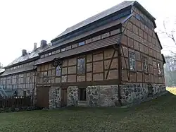 Nach Osten schließt sich giebelseitig das ehemalige Wohnhaus an, das 1750 als Papiermühle auf den Fundamenten eines älteren Gebäudes errichtet wurde. Es hat ein massives Untergeschoss, das Obergeschoss und die Rückseite bestehen aus Ziegelfachwerk. Das Krüppelwalmdach besitzt einen Dachhecht auf jeder Seite. Den östlichen Abschluss bildet ein eingeschossiger Backsteinbau mit Lisenengliederung und Satteldach mit Teerpappe.