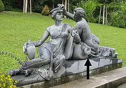 - ↑ Die Kopie K2 wurde 1944 durch Bomben zerstört, nur der Torso der Wiesennymphe und der Kopf der Wassernymphe blieben erhalten.