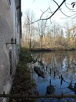 Für die Ziergärten wurde ein künstlicher Wasserlauf angelegt. Den erhalten gebliebenen Wehrgraben rund um das Schloss zieren Seerosen. Zum großen Baumbestand rund um die Schlossanlage gehören Roteichen, Platanen, Perückensträucher, Buchsbäume und Küstentannen.[13]