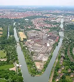 Nach einem städtebaulichen Wettbewerb zur Bebauung des Areals folgte 2003 die Entscheidung, dass auf dem 23 Hektar großen Gelände Wohnhäuser sowie Geschäfts- und Bürogebäude entstehen sollen. Die Erhaltung der denkmalgeschützten Fabrikgebäude blieb zunächst offen. Der seit 1999 leerstehende Werkskomplex wurde in den Folgejahren zum Ziel von Jugendlichen, aber auch von Fotografen und Graffiti-Aktivisten.[1] Zunächst wurden die jüngeren, nicht denkmalgeschützten Gebäudetrakte abgerissen. 2009 wurde ein Teil der Gebäudekomplexe gesprengt. Es kam zum Abtrag von kontaminiertem Erdreich und zum Auftrag einer zwei bis vier Meter mächtigen Sandschicht.[2] 2017 war die Sanierung des Geländes abgeschlossen. Der denkmalgeschützte Wasserturm des Werksgeländes bleibt als zentrales Element und Wahrzeichen der Wasserstadt erhalten. Er ist etwa 100 Jahre alt und 50 Meter hoch. 2016 wurde der Turm für eine Million Euro saniert.[3]
