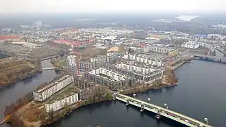 Luftaufnahme des Quartiers Havelspitze in der Wasserstadt Spandau