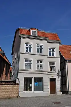 Das Haus gehört zu einer kleinteiligen Reihe von sieben Gebäuden, die den Hof des Heilgeisthospitals nach Westen begrenzen. Wie die anderen sechs Häuser dieser Gebäudereihe stammt der Putzbau im Kern aus dem 18. Jahrhundert.