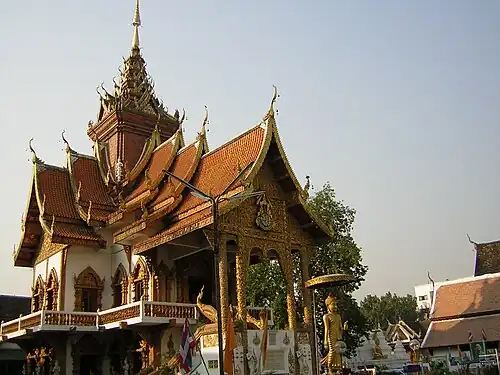 Über den Fenstern des nördlichen Flügels befindet sich eine Art „künstlerischer Stadtplan“: die Wände sind mit symbolischen Darstellungen von Tempeln und Landschaftsmerkmalen in Gold, Rot, Schwarz und hellblau bemalt. Sie stellen einen vom Standpunkt des Betrachters aus gesehenen Stadtplan dar: nach Norden liegt die von einem quadratischen Kanal umschlossene Altstadt mit dem Wat Chedi Luang im Mittelpunkt, links darüber der Wat Chet Yot. Auf der westlichen Wand liegt im Mittelpunkt Wat Suan Dok, im Hintergrund auf dem Doi-Suthep-Berg ist Wat Phra That Doi Suthep auszumachen (siehe Foto). Die östliche Wand stellt die Tempel der Stadt bis hinunter zum Mae Nam Ping dar.