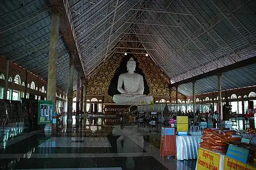 Als zentrales Heiligtum beherbergt der Sala an seiner Stirnseite einen etwa zwanzig Meter breiten und neunzehn Meter hohen, aus Kalkstein gefertigten sitzenden Buddha. Das Material für die Figur wurde aus neun Ländern und von drei verschiedenen Kontinenten zusammengetragen. Bei dieser Buddhafigur handelt es sich um eine Kopie des im Freien vor einer roten Sandsteinfelswand sitzenden Buddhas in einem Waldtempel, der als Wat Pa Rong Than (etwa „Köhlertempel“) bezeichnet wird (Thai: วัดป่าโรงถ่าน) und im Süden der ostthailändischen Insel Ko Chang (der „Elefanten-Insel“) liegt – in Gemeinde und Landkreis Ko Chang (Thai: ตำบลเกาะช้าง bzw. อำเภอเกาะช้าง) in der Provinz Trat Trat (Thai: จังหวัดตราด). Dieser Tempel wurde auf den Internetseiten des Wat Pa Huai Lat beschrieben, ist ansonsten aber noch nicht ausführlicher dokumentiert. – In der weitläufigen Ehrenhalle finden sich außerdem etliche sitzende Figuren von hochverehrten Mönchen, die von den Pilgern mit Blattgold bedeckt werden, weitere Dekorationsgegenstände sowie Verkaufsstände von Lotusblumen, Räucherstäbchen usw. zur Verrichtung des traditionellen buddhistischen Tham bun.