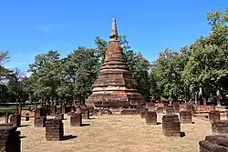 Der Chedi besitzt ein rechteckiges Fundament und wird von Säulen eingefasst. Er enthielt früher Relikte, deren Verbleib aber heute ungeklärt ist.