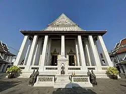 - Der Viharn ist in ähnlichem Stil wie der Ubosot erbaut, im Vorhof stehen 14 Chedis in regelmäßigen Abständen. Im Innern befinden sich 43 Statuen kniender Bhikkhunis welche aus Nak, einer typisch thailändischen Zinn-Kupfer-Legierung gegossen wurden.