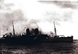 Die Watussi lag 1939 bei Kriegsausbruch in Mocambique. Am 22. November 1939 versuchte sie von dort nach Südamerika durchzubrechen. Am 2. Dezember entdeckte ein Junkers Ju 86-Aufklärungsflugzeug der South African Air Force die Watussi südlich des Kaps der Guten Hoffnung. Die auf der Suche nach der Admiral Graf Spee befindlichen britischen Einheiten Force ‘K’ (Ark Royal und Renown) und Force ‘H’ (Sussex und Shropshire) waren nach dem Auftanken aus Simonstown in See gegangen und liefen zu ihrer Überwachungslinie südlich des Kap Agulhas. Die Sussex entdeckte zuerst das fliehende Schiff, das darauf die Selbstversenkung[8] vorbereitete und von der Besatzung in Brand gesetzt wurde. Die ebenfalls eintreffende Renown feuerte mit einem der Geschütze des B-Turms auf die Watussi, um den Untergang des brennenden Schiffes 50 sm südlich von Kap Agulhas auf (34° 10′ 0″ S, 12° 0′ 0″ O) zu beschleunigen. Die Sussex nahm die in die Boote gegangene Besatzung der Watussi auf und brachte die 193 Personen nach Simonstown zur Internierung.