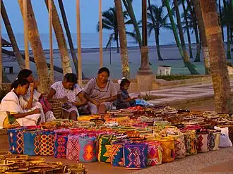 Wayuu-Frauen arbeiten an mochilas, Wayuu-Taschen (Camellón de Riohacha, 2009)