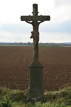 Das Kreuz wurde in der zweiten Hälfte des 19. Jahrhunderts errichtet. Es steht direkt neben zwei markanten Bäumen kurz vor der Gemarkungsgrenze von Düren. Hinter dem Kreuz im Feld lag bis zum Dreißigjährigen Krieg das wüst gefallene Dorf Miesheim.