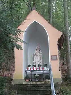 Michael Arnold schuf die Kapelle im Jahr 1877. Die Kapelle ist 3,75 Meter hoch und 2,85 Meter tief.[1] Sie besteht außen aus Bruchsteinmauerwerk. Im offenen Innenraum ist sie verputzt und hell getüncht.[2] Die Sandsteinfigur der heiligen Maria im Innenraum ist 1,65 Meter hoch und steht auf einem aus neugotischem Blattwerk gebildeten Sockelfuß.[2]