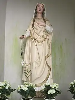 Eine Tafel an der Fassadenseite der Kapelle weist die Marienstatue als Arnolds letztes Werk aus.[2][3] Diese Ausweisung geht auf Hofrat Franz Michael Werner, Bürger von Aschach (heute Ortsteil von Bad Bocklet), zurück.[4] Im Bad Kissinger Stadtteil Garitz wird jedoch die dortige Marienstatue als letztes Werk Arnolds angesehen.[5]