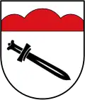 Blasonierung: „In Silber (Weiß) ein schwarzes, schräg liegendes schwarzes Kurzschwert, im Schildhaupt ein roter Dreiberg.“[4] |