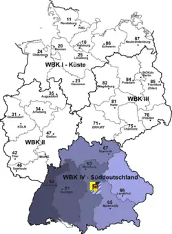 Der Schwerpunkt des Wehrbereichskommandos IV „Süddeutschland“ war die Logistik. Die Verteidigungsbezirke wurde teils neu geordnet und reduziert. Dem Wehrbereichskommando IV „Süddeutschland“ unterstanden folgende Verteidigungsbezirkskommandos: