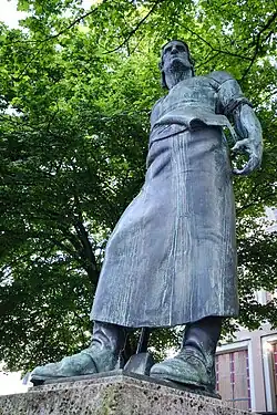 Am 21. Dezember 1962 wurde der Wehrhafte Schmied auf einen neuen Unterbau versetzt, der etwas näher an der Kind-Jesu-Kapelle lag. Am 18. Dezember 1976 wurde die Denkmalfigur nachts vom Sockel gestürzt und beschädigt.[2] Nach der Reparatur der Schäden wurde sie kurze Zeit später wieder aufgestellt.