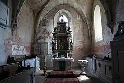 Umfangreiche Wandmalereien sind im Chor nahezu vollständig und an der Nordwand des Langhauses teilweise erhalten. Im Chor sind drei Ausmalungen erhalten. Die älteste Schicht aus der Zeit um 1225/1230 mit einem Passionszyklus über einem roten Vorhang mit einem Mäanderband ist auf der Nordwand und auf der Südseite der Ostwand zu finden. Darüber ist eine frühgotische Arkade gemalt, in deren Interkolumnien in Vollfigur gemalte Heiligengestalten aus der zweiten Hälfte des 13. Jahrhunderts stehen, welche vermutlich Apostel und Propheten darstellen (Südwand). Die am besten erhaltene, spätgotische Wandmalerei ist in der Sockelzone zu finden und zeigt eine ehemals umlaufende Engelsprozession vom Ende des 15. Jahrhunderts. Dazu gehört auch die auf die Sakramentsnische an der nördlichen Ostwand bezogene Malerei mit dem Schweißtuch der Veronika, zwei Engeln, welche eine Monstranz tragen, und einem Gnadenstuhl aus der Zeit um 1500. Das Gewölbe ist mit Sternen und Fugenaufmalungen an den Rippen aus der Zeit um 1225/1230 versehen. Die Schlusssteine aus der Zeit der Spätgotik zeigen einen Christuskopf und Wappen. An der Nordwand sind nur einzelne Fragmente der Malerei erhalten, allerdings mit einer Signatur: „Hic fuit thoma mosko“.