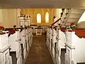 1749 wurde das barocke Dachwerk über dem Saal errichtet, außerdem wurde die Empore eingebaut. Die Brüstung, das Gestühl sowie die Kanzel sind bis heute erhalten geblieben. In diesen Jahren erhielt die Kirche auch eine barocke Ausmalung, die heute teilweise freigelegt und auch bei der Restaurierung ergänzt und erweitert wurde.