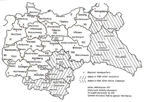- ↑ Friedrich Stahl: Heereeinteilung 1939. Dörfler, ISBN 3-89555-338-7.