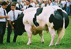 - ↑ L. Grobet, L. J. Martin, D. Poncelet, D. Pirottin, B. Brouwers, J. Riquet, A. Schoeberlein, S. Dunner, F. Ménissier, J. Massabanda, R. Fries, R. Hanset, M. Georges: A deletion in the bovine myostatin gene causes the double-muscled phenotype in cattle. In: Nature genetics. Band 17, Nummer 1, September 1997, S. 71–74, doi:10.1038/ng0997-71, PMID 9288100.