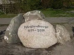 Aus dem Jahre 1619 ist die erste Erwähnung Weißenberges bekannt. Um 1950 bestand Weißenberge nur aus einer Ziegelei und wenigen Häusern.[1] 2019 beschloss der Rat der Gemeinde Wahrenholz die einheitliche Schreibweise des Ortsnamens Weißenberge, in diesem Jahr wurde auch ein Gedenkstein an das 400-jährige Ortsjubiläum aufgestellt.[2]