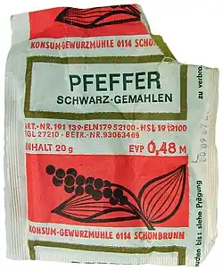 - ↑ reife, geschälte und getrocknete Früchte von Piper nigrum