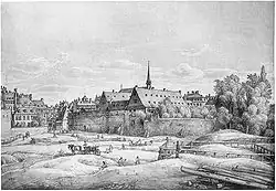 - ↑ Siehe z. B. Hartwig Beseler, Niels Gutschow: Kriegsschicksale Deutscher Architektur. Verluste, Schäden, Wiederaufbau. Band II: Süd, Karl Wachholtz Verlag, Neumünster 1988, S. 807
