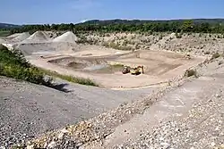 Der Abbau erfolgt im offenen Tagebau bis in eine Tiefe von ca. 30 Metern unter das gewachsene Terrain. Damit liegt die Sohle der Kiesgrube fast auf der Tiefe des nördlich des Abbaugebietes fliessenden Rheins. Nach dem Entfernen der Humusschicht wird der Wandkies mit Hilfe von Radladern abgetragen und zu einem Zwischenlager geführt, von dem aus das Material über Förderbänder aus der Grube ins Werkgebäude transportiert wird.