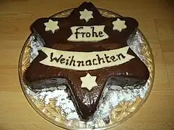 In der Schweiz gibt es traditionell nebst regional unterschiedlichen Lebkuchen (Luzerner LK,[5] Nidwaldner und Obwaldner[6] LK, Berner Honig-LK,[7] St. Galler Biberli[8] u. a. m.),[9] Mandelgebäck, Zimtsternen, Vanillegipfeli,[10] Mailänderli, Spitzbuebe, Basler Brunsli, Baselbieter und Berner Rahmtäfeli,[11] Brätzeli oder Sablés,[12][13][14] noch Zürcher Tirggel (ältestes Weihnachtsgebäck der Schweiz, seit ca. 500 Jahren bekannt),[15] Badener Anischräbeli (nach der Schweizer Stadt Baden),[16] Basler Läckerli oder Berner Haselnussleckerli.[17]