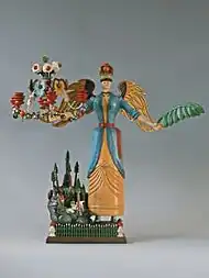 Das Engelzimmer beschäftigt sich mit einer sehr alten Tradition des Erzgebirges. Engel wurden bereits um 1500 mit dem Bergbau der Region in Verbindung gebracht. Die Figuren haben einen gedrechselten Körper, der je nach Herkunftsfamilie unterschiedlich gestaltet und bemalt wurde. Von herbem Charme bis hin zu einer gewissen Überheblichkeit reicht der Ausdruck und weist zugleich auf die tiefe Frömmigkeit hin, die die Bergbauregion prägt. Einige Herstellerfamilien werden vorgestellt und Besonderheiten erläutert. Schwebe- und Leuchterengel aus verschiedenen Generationen zeigen, mit welcher Intensität sich die Erzgebirger den Engeln gewidmet haben. Ein herausragendes Beispiel ist ein erzgebirgischer Engel von Karl Louis Härtel mit einem Leuchter und Paradiesgarten, der verschollen war und nun aufwendig restauriert in neuem Glanz erstrahlt. Sein Gegenstück, der Bergmann, befindet sich im Museum für Sächsische Volkskunst Dresden.